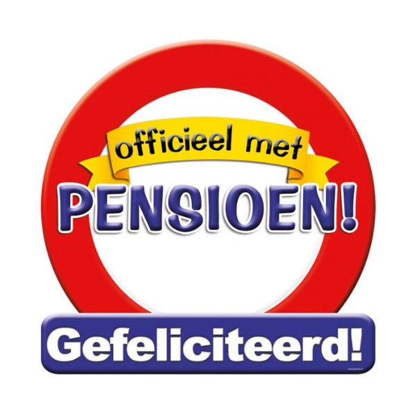De huldeschilden van Feestverhuur Drechtsteden zijn al jaren een bestseller. Deze grote huldeschilden zijn met 50 x 50 centimeter de perfecte decoratie aan deuren en ramen. Dit huldeschild met Pensioen (cartoon) is gemaakt van karton met een plastic laagje. Ideaal om te gebruiken buiten op de deur of binnen op raam of muur, en omdat het geen sticker is kan dit huldeschild makkelijk met plakband of door middel van een touwtje opgehangen worden.