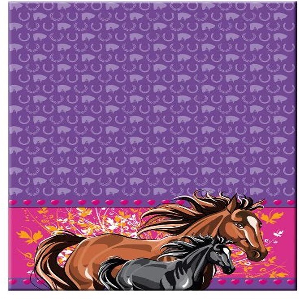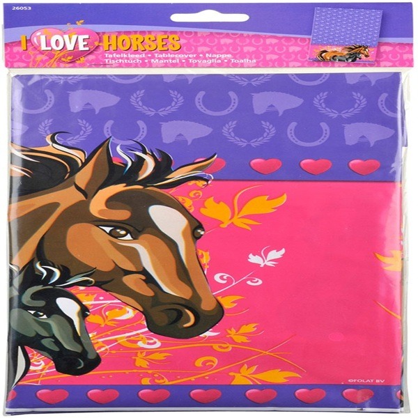 Eten, kliederen, knutselen of gewoon als decoratie voor je kinderfeestje. Jij kunt zo veel knoeien als je wilt met dit tafelkleed. Want je tafel blijft gewoon mooi schoon. Dit I love horses tafelkleed is 130 x 180 cm.